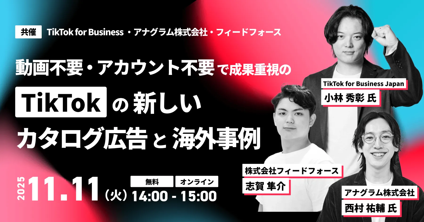 【11/11 開催】TikTok for Business 登壇!EC・人材・不動産・旅行サイト必見! 動画不要・アカウント不要で成果重視の TikTok の新しいカタログ広告と海外事例