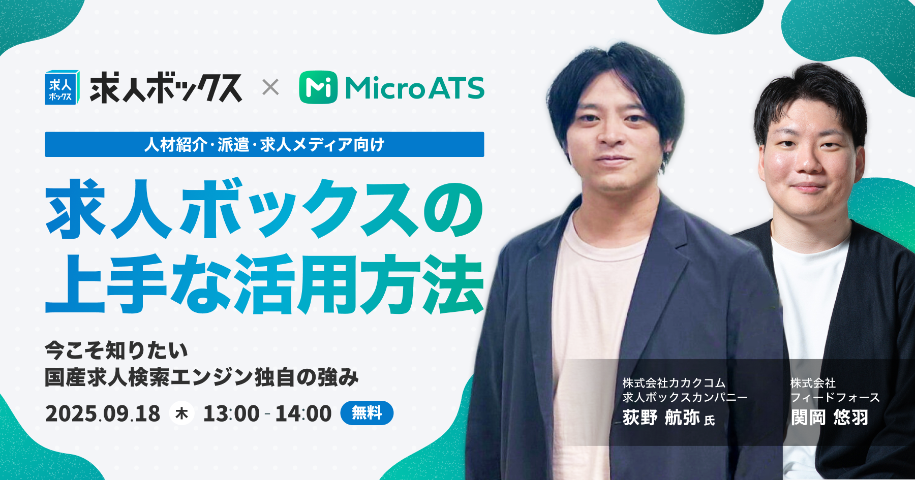 本セミナーでは、求人ボックスを運営するカカクコムが登壇し、最新の動向と活用のポイントをわかりやすく解説。また、フィードフォースからは 人材企業様におすすめの運用設計や、「かんたん応募」に対応したMicro ATSについてご紹介します。